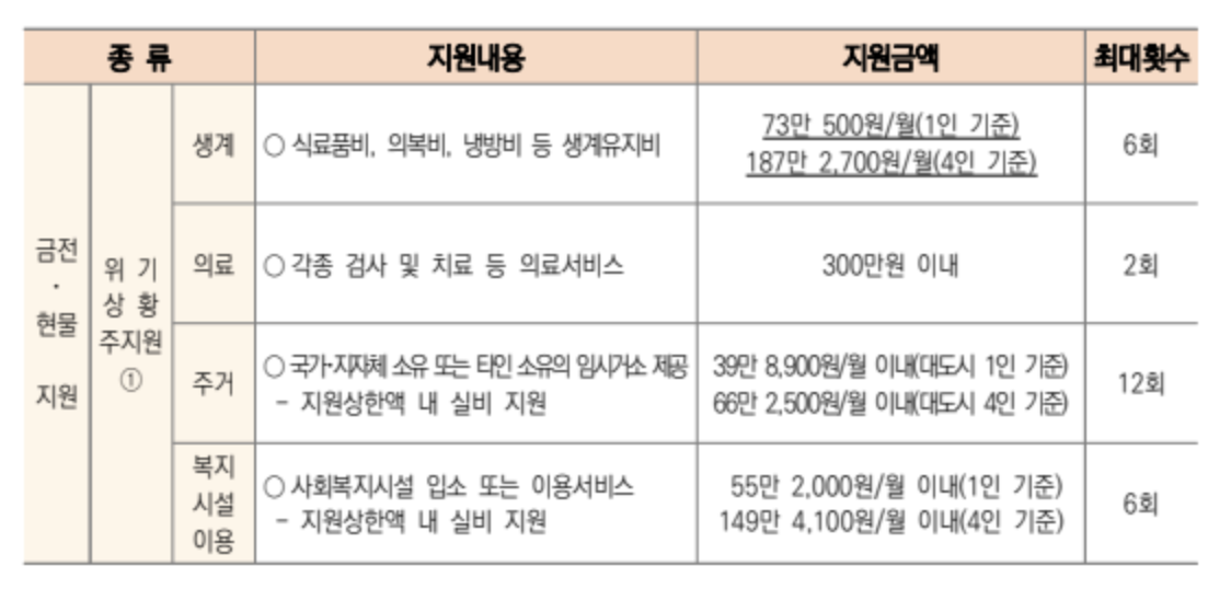 4. 긴급복지 생계지원 내용